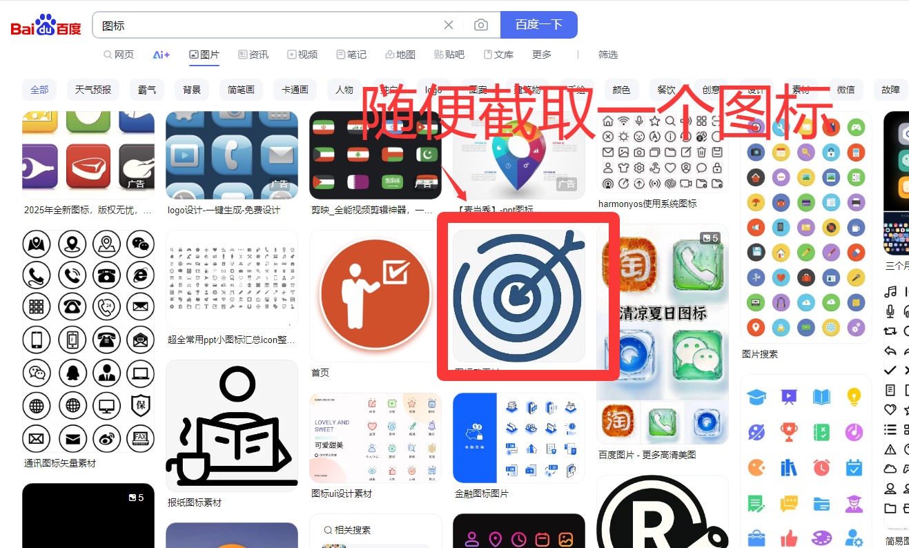 1、首先我们随便在百度图片截图一个带有明显色域的图标,保存jpg格式到本地电脑桌面;