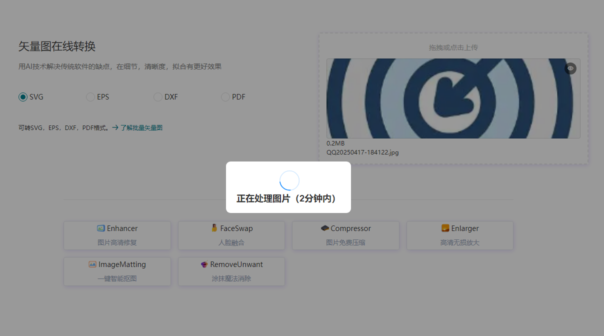 3、上传后矢量图生成器自动进行在线转换,效率非常高稍微等待一下即可;