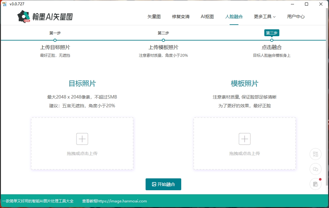 只需要上传两张人像照片,即可在线ai变脸融合成一张人脸效果,参考人像照片可以是明星、动漫人物等,制作出非常有趣的可爱高效照片。