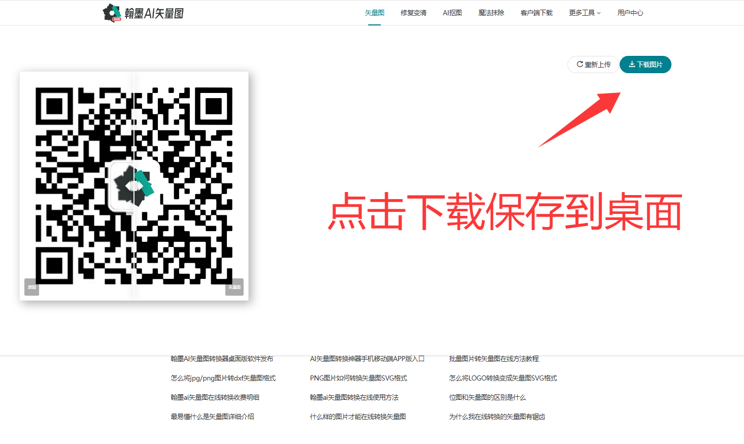 接下来翰墨AI矢量图转换器将自动在线进行AI人工智能处理,我们只需要等待一下即可获取转换后的素材,点击下载图片将二维码矢量图保持到本地;