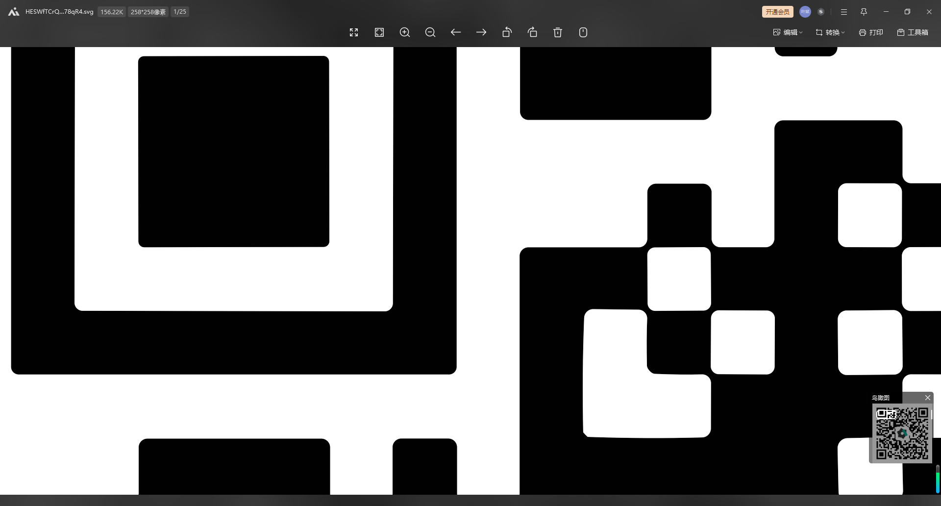 最后我们通过图片查看工具(演示使用的是WPS的阅读器)看一下二维码转换矢量图后的效果,放大数百倍之后可以看到颜色和线条都是无损高清晰的,完全可以满足二维码转矢量图放大的各种应用场景。