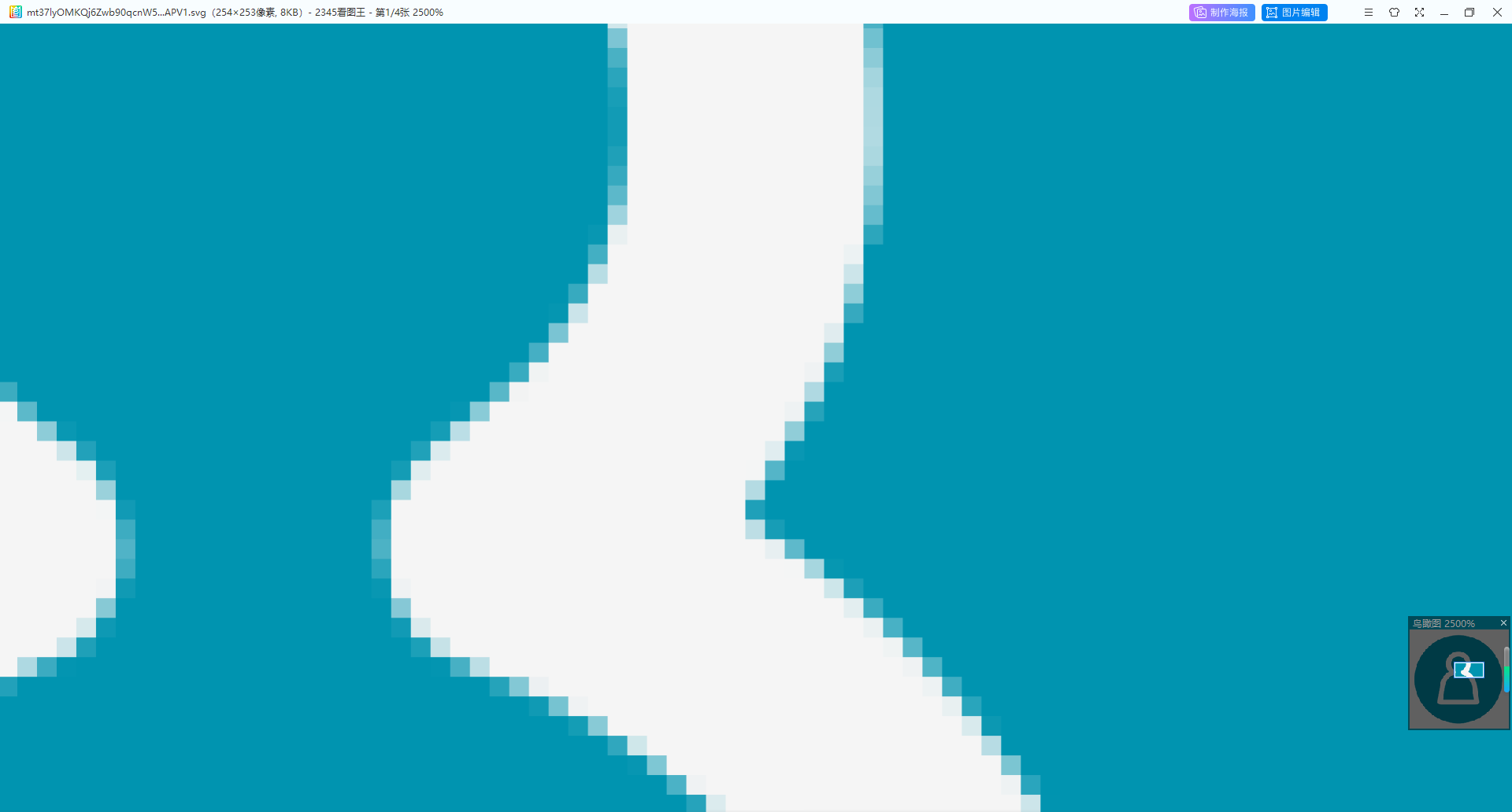 下载出来后使用2345看图软件打开进行放大,效果如下图所示严重的锯齿;