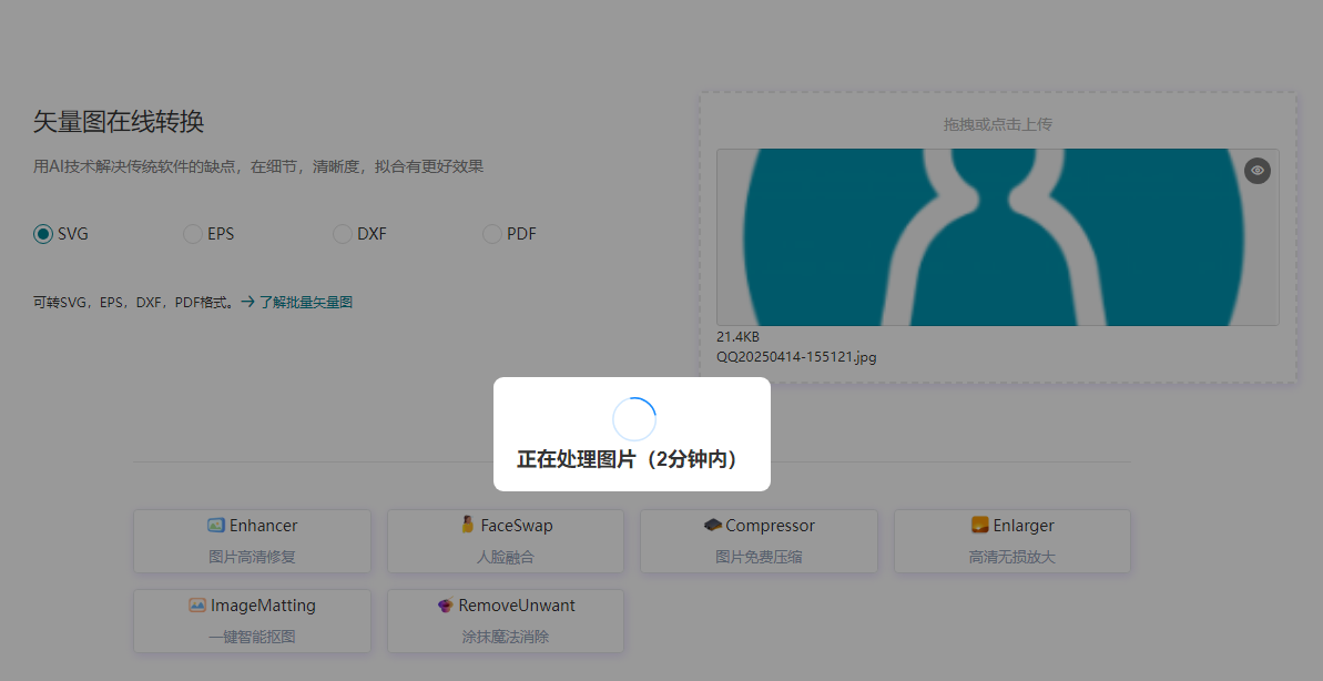 上传完成后如下图所示在线矢量图软件自动完成转换工作,我们只需要等待一下就好;